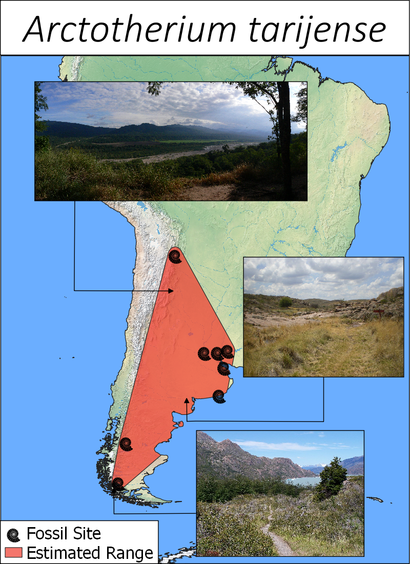 As noted, A. tarijense inhabited the southern reaches of South America, making it the most southerly bear in the world. The most chronologically recent finds, from Cueva de los Chingues in Chile and Río Negro County in Uruguay, both date to around 11,000 BP (2). As with all prehistoric genera, however, the time of last remains cannot necessarily be taken as the exact date of extinction.
